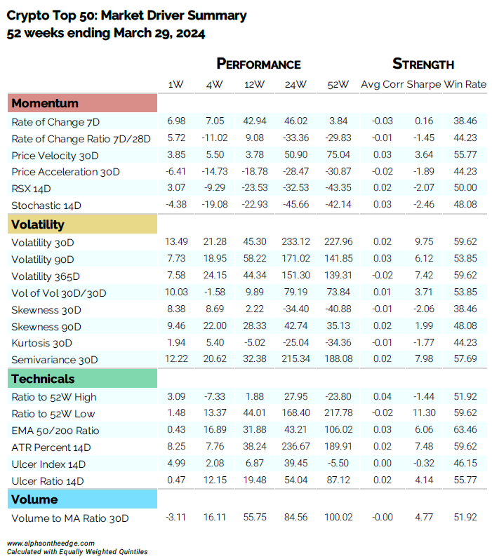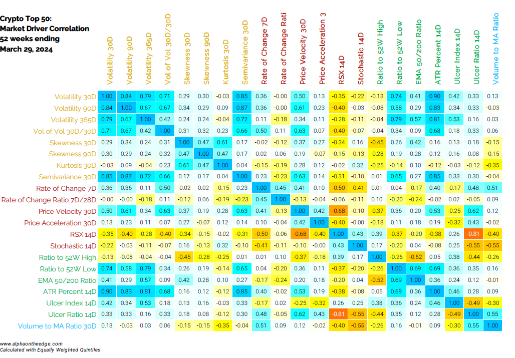 Now that we have looked at the basics of market drivers, it’s worth diving deeper because there are some surprising patterns that can be found with the market driver framework. We will stick with our own “Crypto Top 50” for a little while longer because this might help contribute to the growing interest in crypto market factors.